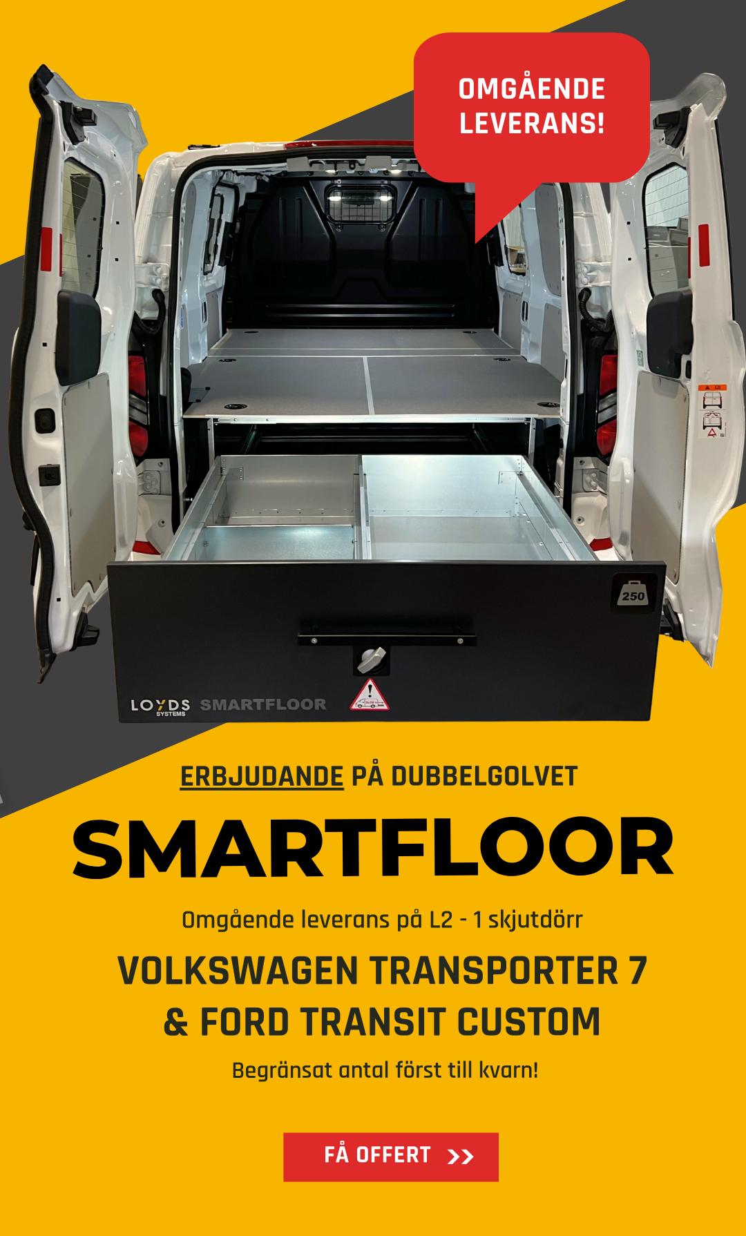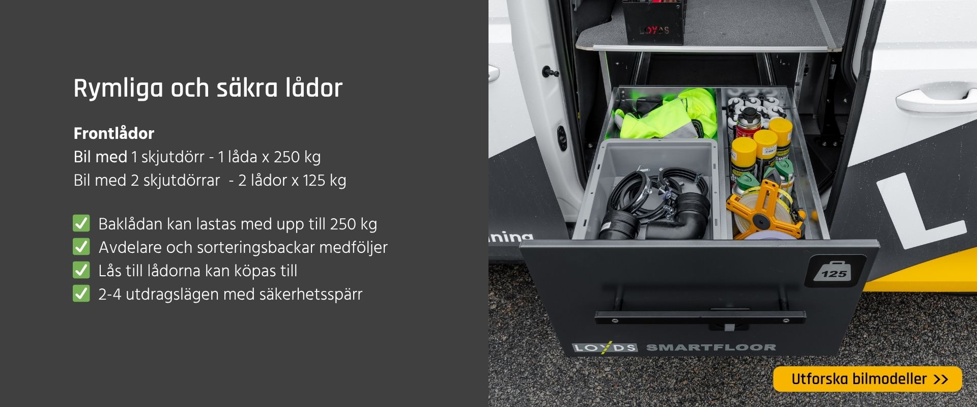 Dubbelgolv med lasttunnel som hjälper dig att hålla ordning, arbeta effektivare och minska användningen av släp