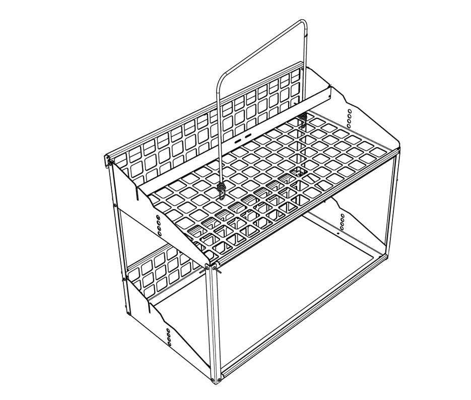 Top Rack kabelhylla. Specialdesignad hylla för elektriker till förvaring av både 30x30cm och 40x40cm kabelkartonger. Flexibel avdelare uppe och nere.