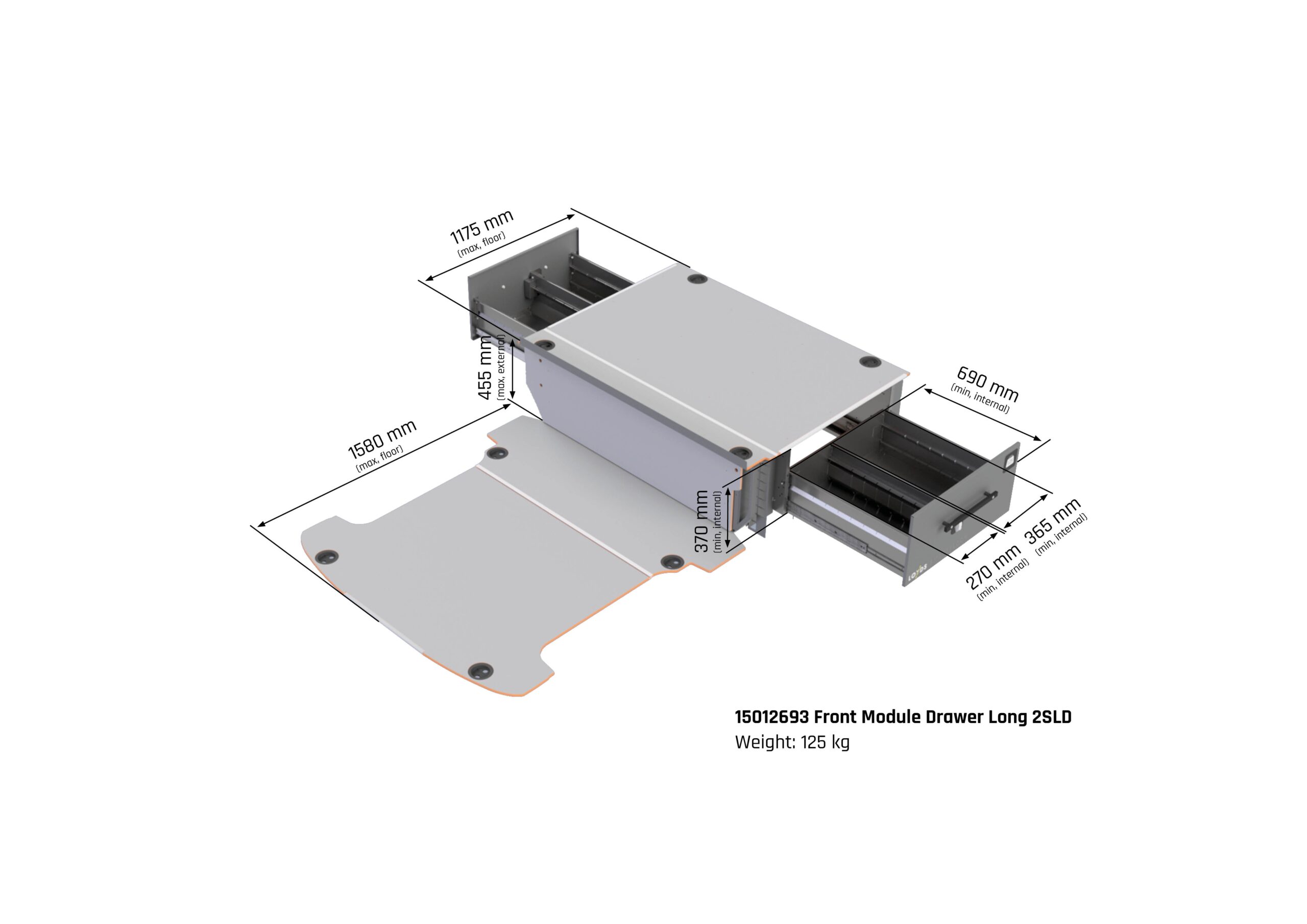 Med Smartfloor frontmodul får du såväl styling till VW Transporter som proffsigt lastutrymme. Smartfloor har nämligen extra höga sidolådor som rymmer hela 0,4 m3 och har en nyttolast på 250 kg. Den rymmer såväl större verktyg och maskiner, som mindre sortimentslådor. Du har därför alltid full översikt över alla av verktyg och material som förvaras i den rymliga lådan. Med denna bilinredningen till Volkswagen Transporter har du full takhöjd i bakre delen av lastutrymmet till transport av extra stora varor och verkyg.