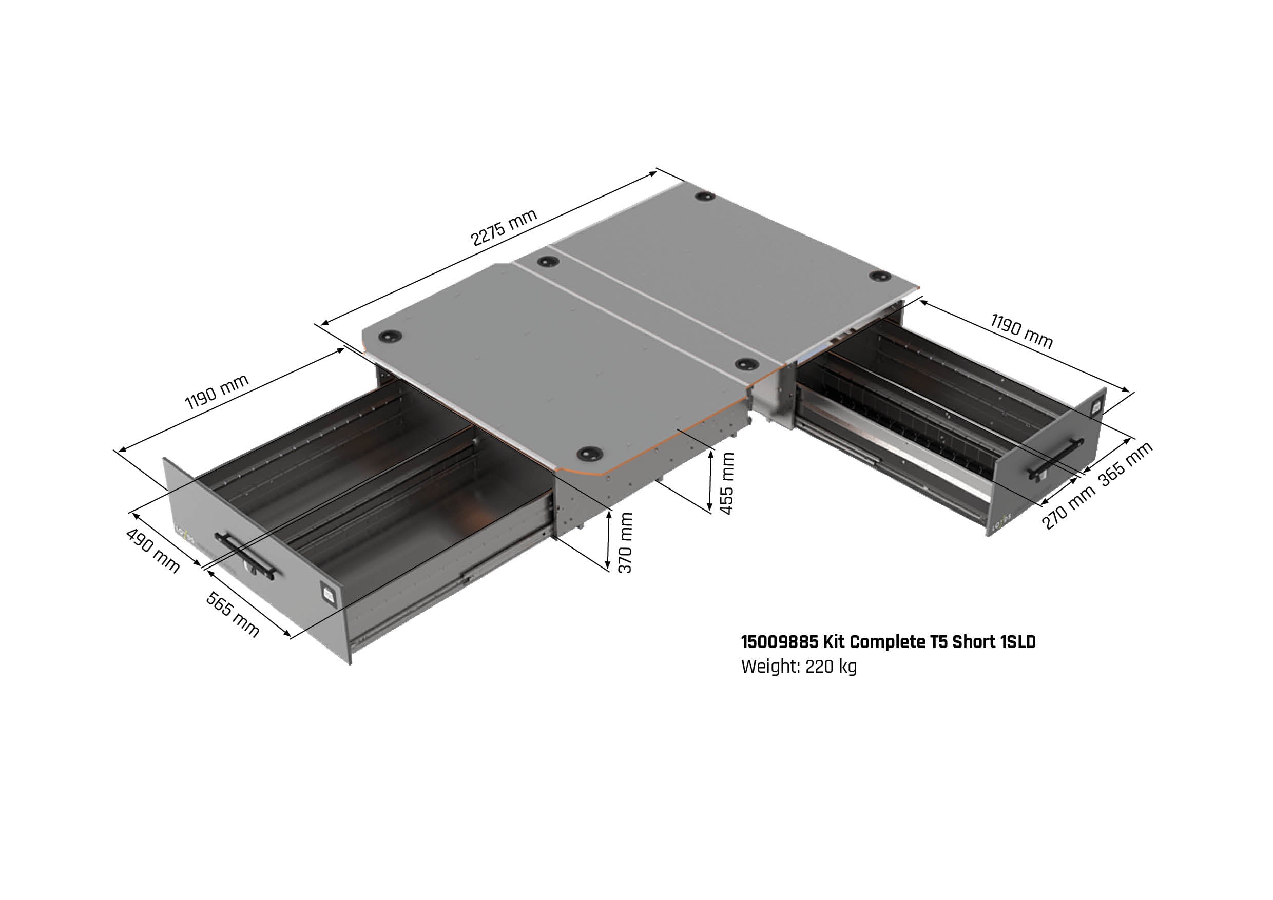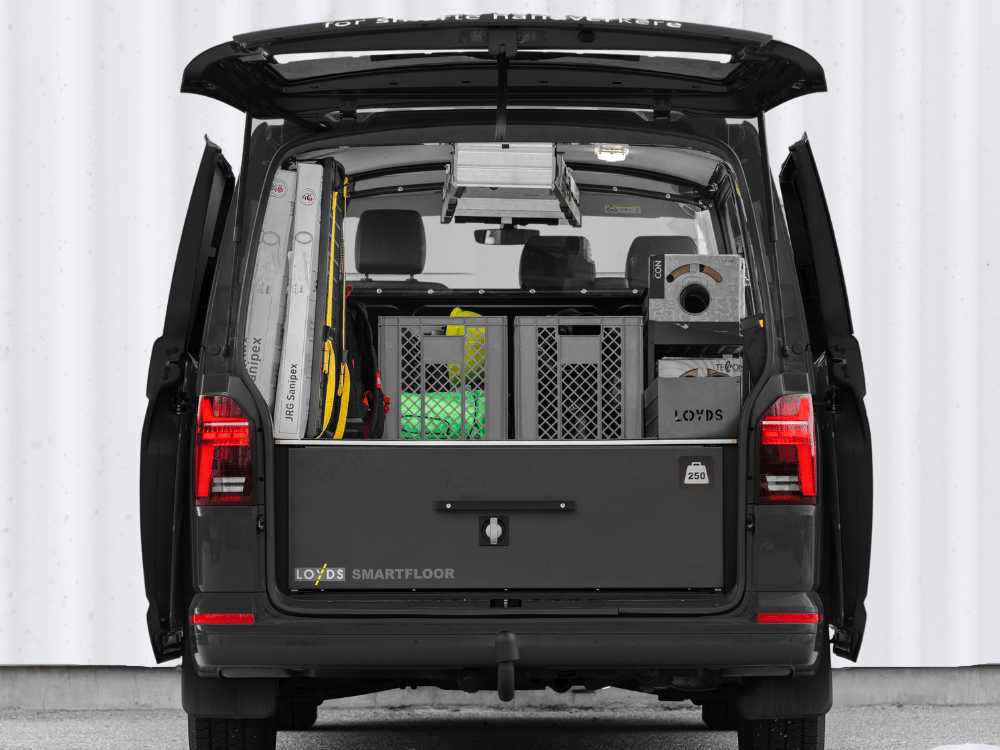 Med Smartfloor som bilinredning till Volkswagen Transporter får du extra höga lådor som rymmer en lastvolym på hela 1m3 och har en nyttolast på 500 kg. Du har alltid full översikt över alla verktyg och material som förvaras i de stora lådorna i dubbelgolvet. Med Smartfloor bilinredning i lastutrymmet får du både snygg styling på din VW Transporter och proffsig organisering.